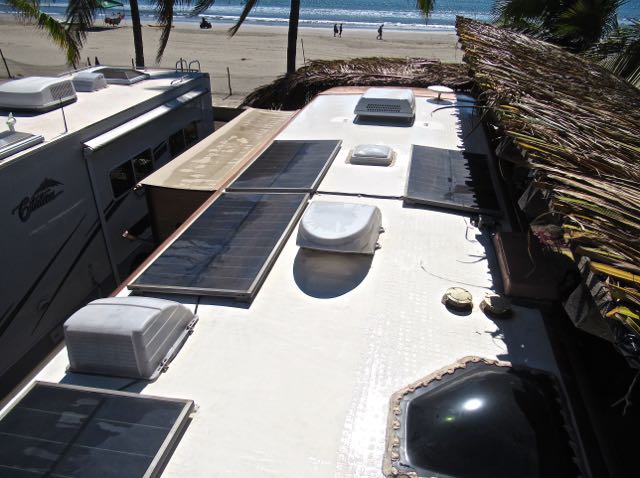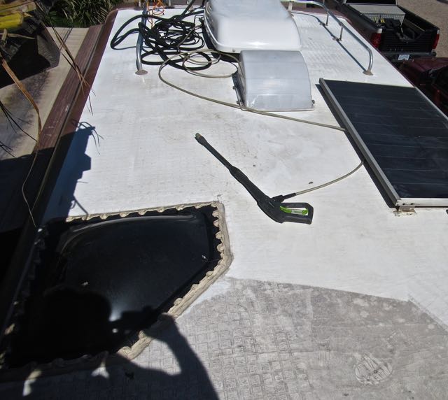 Colin has finished washing and waxing the RV.  However the roof is a mess.  We have a fibreglass roof but over the years is it slowly starting to give us some white residue when it rains.  We clean it annually but he decided to power wash it last week.  What a difference.