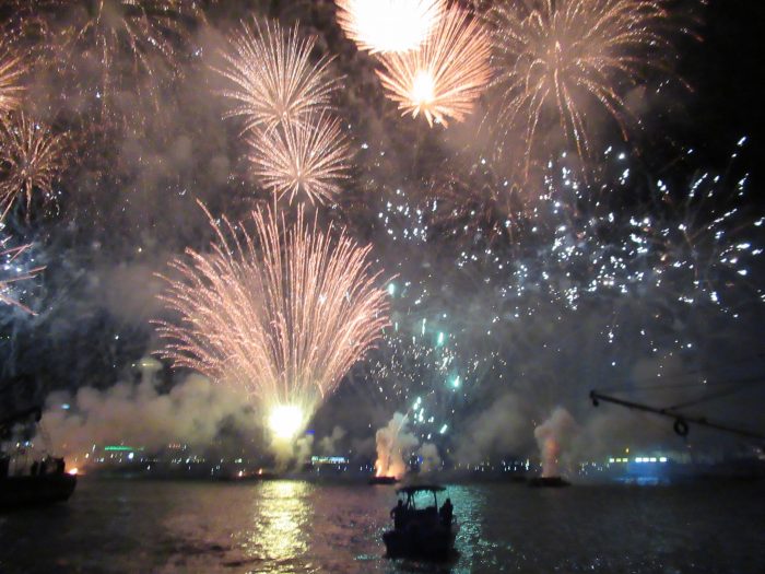 Great idea to rent a boat. I hate big crowds like that although the fireworks looked incredible.