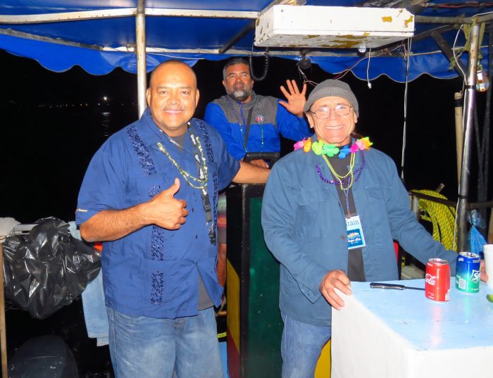 This past Saturday, the 22nd, I arranged for a catamaran to take about 50 of us from the Isla out to see the fireworks. I found about 150 beads at a garage sale back home this past summer and bought them to share with everyone on the boat. I wore a neon crown and necklace so that everyone knew where I was.