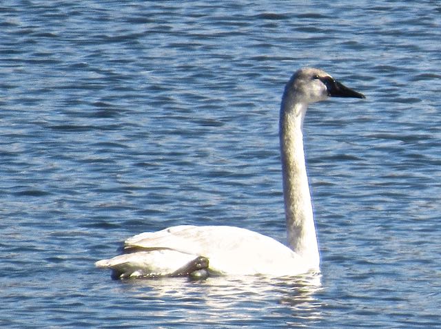 We got back from the garden yesterday afternoon and then Colin took off to the RV for a few moments which turns out to be over two hours. I was so fortunate to see this lone visitor. Where is its mate?  I had hoped to see a tundra swan and here it was.  It spent the rest of the afternoon going back and forth in front of our site.  Today it was nowhere to be seen.