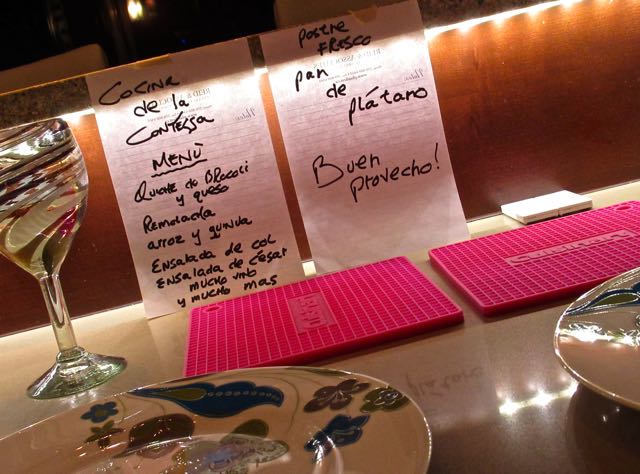 1. Contessa is that a new rain chain I noticed on your picture? Anyway it looks very pretty with the green and pink glass design. Being a vegetarian your dinners always look very creative and colourful. Nice touch with the menu.