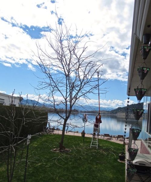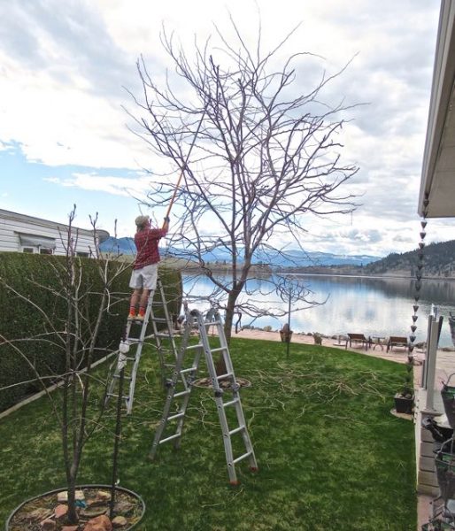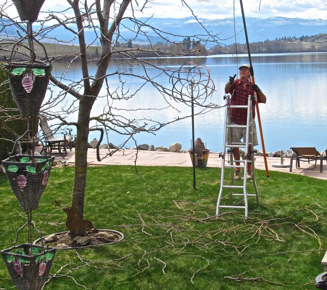 Colin is not sitting still unless he is playing a guitar.  This tree really needed attention.