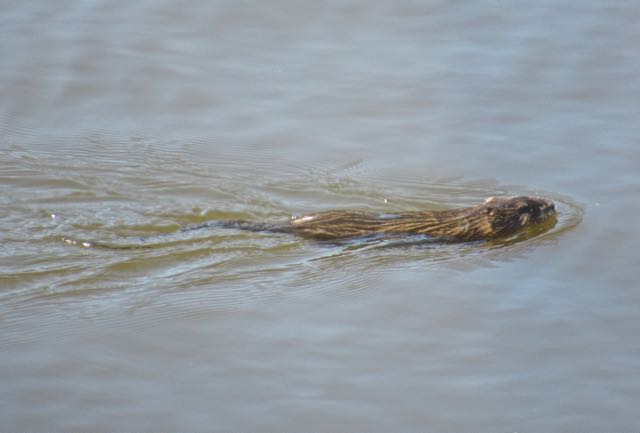 We have both seen the beaver in the past two weeks. I was lucky to snag this photo as he came up for air as he passed our living room windows. But how do I know if this is only a muskrat?  They look so similar in the water.