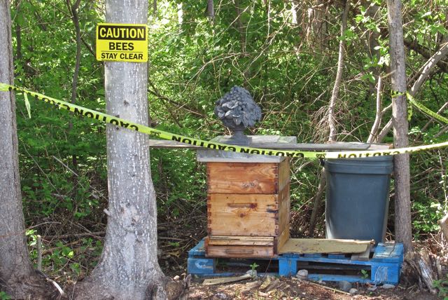 Someone brought a beekeeper in who set up a small hive right next to our gardens.