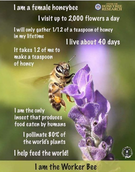 One bee only gathers 1/12 of a teaspoon of honey in its life.  We seriously need bees in our world.  Keep them safe