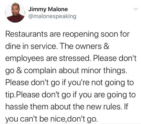 I think that this is a fair statement. Getting back to serving the public wearing masks and gloves won’t be easy.