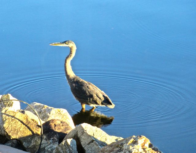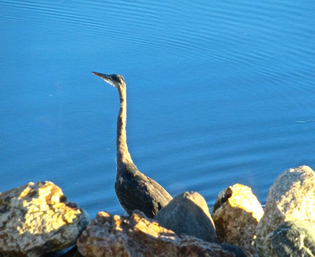 I was opening the blinds as the sun was setting and saw that we had a heron on our beach.