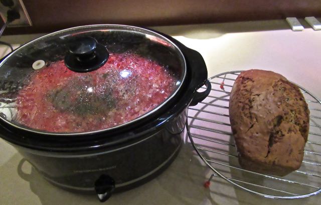 Last week I made a crockpot full of borscht with our beets of course, as well as a zucchini loaf. We have more tomatoes than we can eat and I think even the neighbours are tired of them.