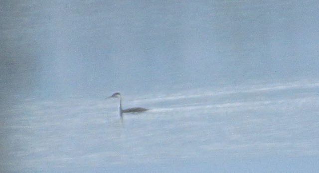 No idea what this bird is.  It has black on the top of its head and some black on its back.  It was way far out on the lake and this was the best photo we could get. We have not seen it again.