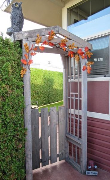 I noticed that several homes here decorate for fall, so I made a bit of an effort. The owl is there to keep the birds away but adds a bit of an effect. As do all the spider webs on the arch.