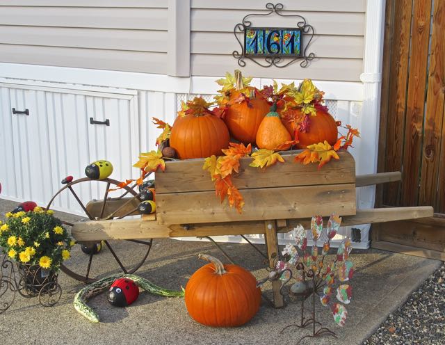 Many years ago we used to carve pumpkins and place them out front with candles in them. The best part was roasting the pumpkin seeds. Now I simply enjoy seeing them on my steps.