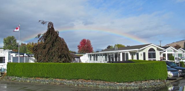 We had so much rain during the evening and night of October 12. Eventually the clouds cleared yesterday ( Oct. 13 ) and we were treated to this rainbow. The first time ever in 17 years that we have seen a rainbow in the north. they are usually in the east.