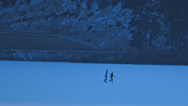 About 3PM as we headed out on our walk we spied two skaters mid lake. Rather dangerous as the ice has been melting and doing a bit of freezing for days now.