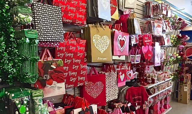 We stopped at a Dollar Store Friday. Okay I get the Valentines Day stuff, but St. Patricks Day! To the extreme right between the pink/red Valentine merchandise  and the Pepsi sign are Easter egg flowers. I guess business is slow but this it too much.  Actually I am never here at this time of year so perhaps this is normal??