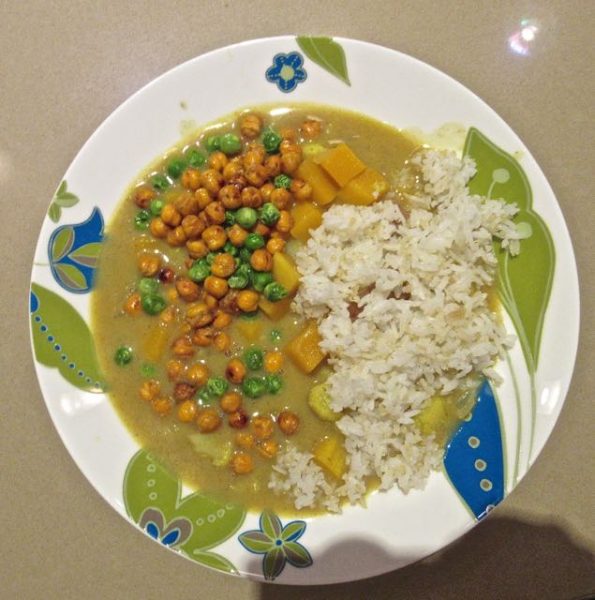 This is the butternut cauliflower coconut curry that I made a few days ago. I posted the recipe within the past few weeks. I served it with rice on the side. It was very very good.