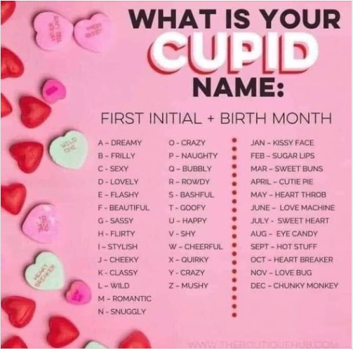 I am Sexy Heart Throb and Colin is Sexy Sweet Heart. Feel free to share your Cupid name.
