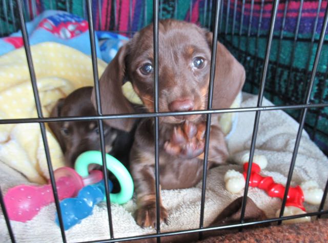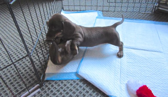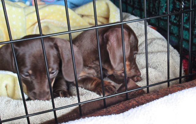 Such different personalities. They appear to be able to do some things without the other. They are difficult to tell apart. One has a thicker tail than the other but you have to see them together to know which is which. Also one is a bit darker but unless they are close you don’t notice. Carlie does tend to hang back more and is slow to warm up at times, she does things at her own pace. They are both wonderful wrestlers and we are now tonight hearing their voices. They can be loud or soft. So fun to watch.  The only problem is that they are so dark that it is difficult to photograph them. Tonight they are playing in their crate as well as wrestling in it. Once we get home tomorrow we will be able to set things up ever so much better. We think that they have done a great job of being in a car for the first time ever. Today was close to four hours.  Tomorrow will be seven hours including an on the road feed and play time 🙄 They are very special puppies. we are so lucky that they came into our lives.