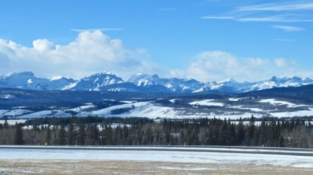 The mountains come into view at the west side of Calgary. Spectacular with the first coat of snow.