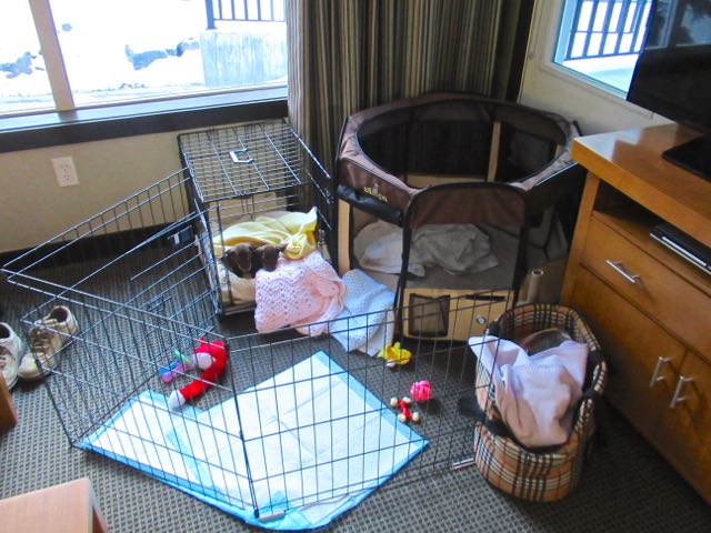 The set up for tonight at least. They have a bedroom, a bathroom, a small play area and a feeding station in the octagon play pen as well as a family room.