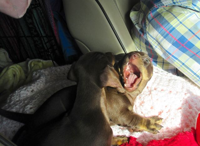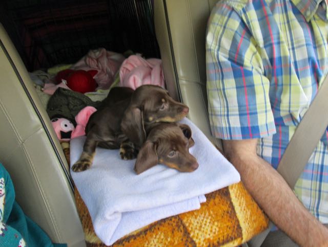They did get back in their crate and slept the rest of the way home including a stop in Armstrong to pick up more wee pads.