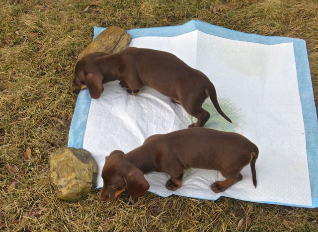 We kept them in the crate while we unload very quickly. Then we put the wee pads from the back of the Jeep on the lawn and they went right away. They loved running around. Sadly they are able to walk right under the front gate which we had made lower just in case we got new pups one day. So we have them now but they are so tiny. They don’t mind going outside but if the wind is blowing and it is freezing like at night, they cry. We will easily be able to find a temporary fix for the gate until they grow more. But right now they have a penned area on the lawn reserved just for them.