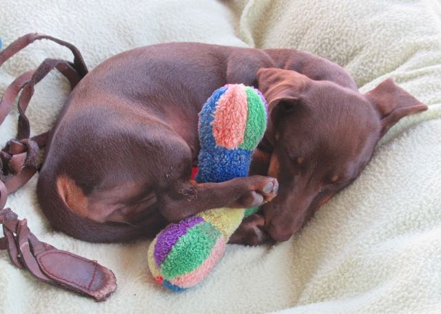 This particular dog toy belonged to our very first two pups that we got in 2010 and 2011, Cloii and Channel. It is so very sweet and touching that Ciela was embracing it as she napped.