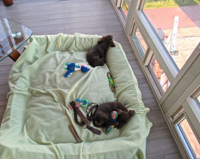 Did I ever tell you about this huge dog bed that Colin brought home after puppy class one night? They love it and we call it the wrestling bed. So now we have this new huge bed as well as the balcony bed with a view, the fireplace bed for heat and their crate. Oh and today we added an office bed so they can be close to us when we are on the computer.