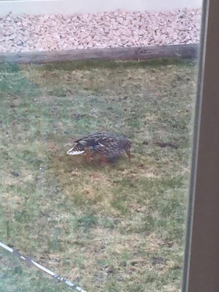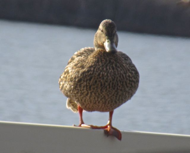 Meet Mabel as named by our new neighbour. Long time readers might recall how this duck nested in our hedge. In fact she is standing on the fence directly above where her nest has been for a few years.