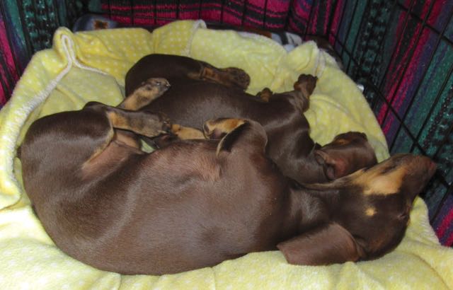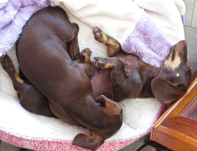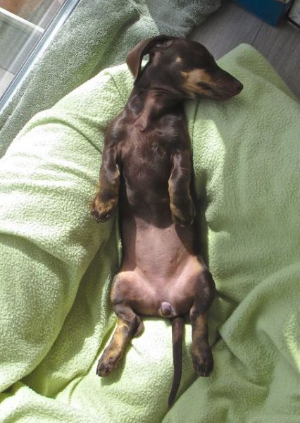 Doxies do like to sleep on their backs.