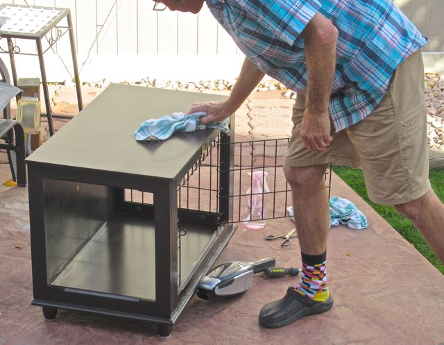 The night before we left for Edmonton, on the 22nd of September, I spotted a dog crate on FB marketplace. It was directly across the main road from us. Colin went and checked it out first thing in the morning and purchased it. Finally Colin has had time to clean it thoroughly as it belonged to cats. We are airing it out as well. It is slightly larger ( 30 x 19 x 22 ) than what the girls now have so will give them more room to stretch out and it is a nice piece of furniture made by, Cesar Millan, the dog whisperer. It originally was $168.00 and we paid $50.00.