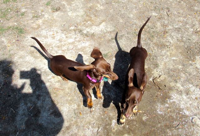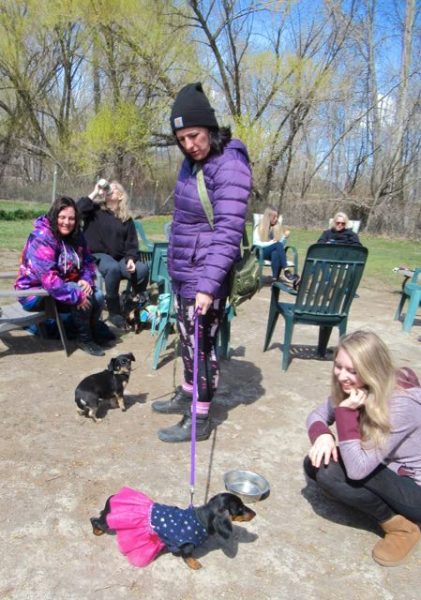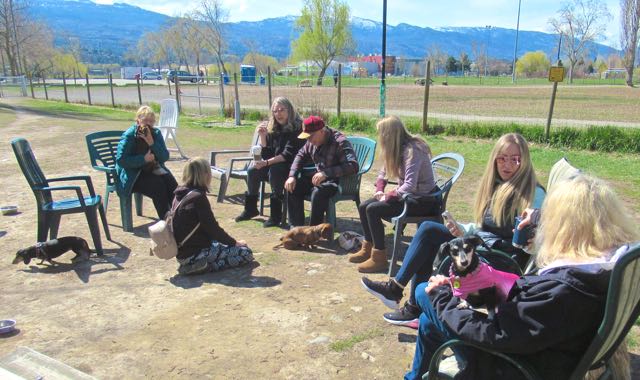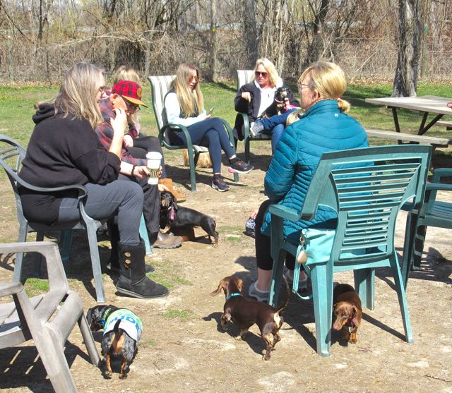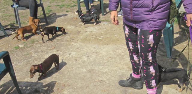 Here in Kelowna we have a dachshund club which can be found by clicking here. I became aware of it just before we left last fall. I made a few posts over the winter, the girls with their Santa hats and photos and one video of them running on the beach. When we got home I was surprised to see an event at an off leash dog park ( that I never knew existed ) just this past Saturday the 16th. So off we went. The girls were shy at first but came into their own. It was good for them to be around another 15 or more doxies plus the few other dogs that come into the small off leash area.