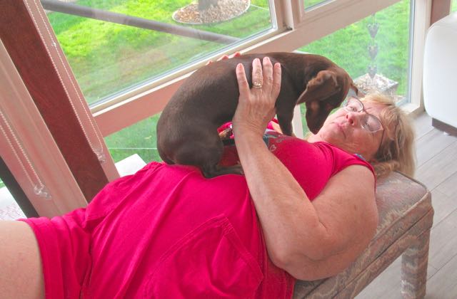 We had no idea that they could jump like that. Here her tongue is cleaning my face.
