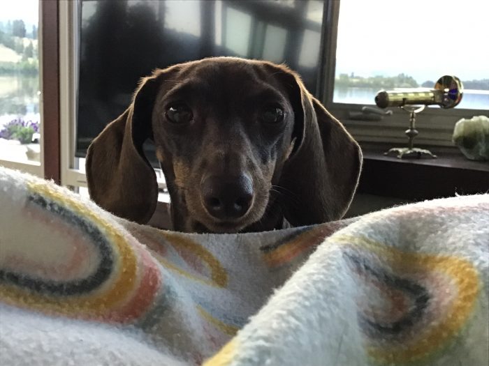 We had no idea that they could jump like that. Here her tongue is cleaning my face.